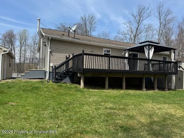 +"PublicRemarks": "Well-maintained 2006 ranch-style residence, ideally situated on a level lot in desirable Jefferson Township. Offering single-level living at its best, this 3-bedroom, 2-bath home features an open floor plan, a spacious kitchen, and a private primary suite with full en-suite bath. Main-floor laundry and easy entry -- just a few steps to the door -- make daily living effortless.Step outside to a generous rear deck perfect for entertaining, complemented by low-maintenance vinyl siding. A huge detached two-car garage provides room for vehicles, workshop space, and storage. The full unfinished basement -- with poured concrete foundation and a cozy wood stove -- offers endless potential for future expansion, a rec room, or additional storage.Enjoy the convenience of public water and sewer, plus quick access to Interstate 84 and major thoroughfares, all within the highly regarded North Pocono School District."